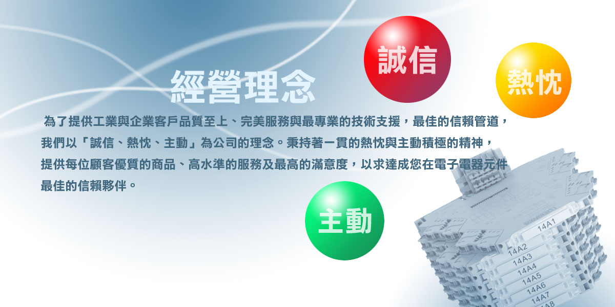 您在電子電器元件最佳的信賴夥伴;並持續擴大品牌,朝國際品牌前進。